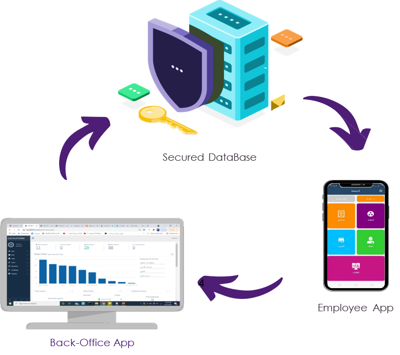 Instant Communication: System enables remote communication and real time interactions between back office admins and employees. Team members can also carry out peer to peer communication amongst themselves allowing for better collaboration and knowledge sharing.
